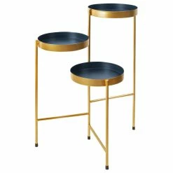 Uniek Finn Metal Tri-Level Plant Stand, Navy Blue/Gold 16x21x30