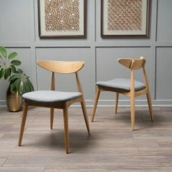 GDFStudio GDF Studio Issaic Mid Century Design Wood Dining Chairs, Set Of 2, Light Gray/Wa