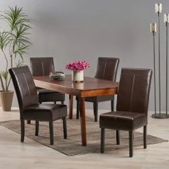 GDFStudio GDF Studio Percival T-stitched Chocolate Brown Leather Dining Chairs, Brown, Set