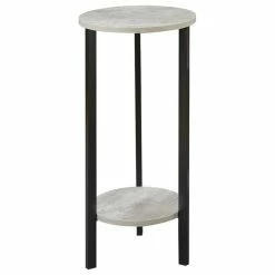 Convenience Concepts Graystone 31″ Plant Stand In Gray Faux Birch Wood And Black Metal Frame