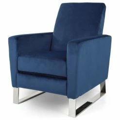 GDFStudio Arvin Velvet Push Back High Leg Recliner With Stainless Steel Legs, Cobalt