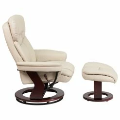 Flash Furniture Contemporary Cream Leather Recliner And Ottoman