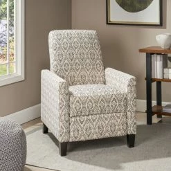 GDFStudio Bellagio Contemporary Fabric Upholstered Push Back Recliner, Black Print/Espress