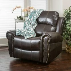 GDFStudio GDF Studio Everette Brown Leather Power Recliner With Arm Storage And USB Cord