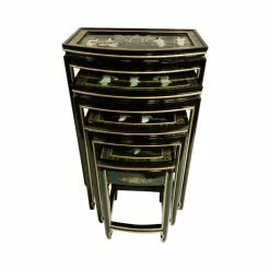 Oriental Furnishings Black Lacquer Asian Stacking Tables, 4-Piece Set