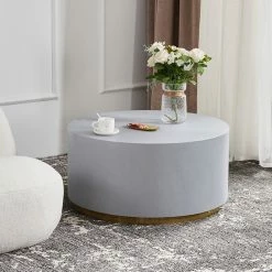 HOMARY Industrial Coffee Table Round Cement Coffee Table, Light Gray