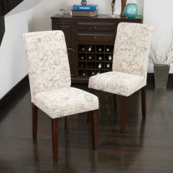 GDFStudio GDF Studio Script Printed Linen Dining Chairs, Set Of 2