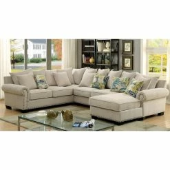Ashcroft Milton Modern Tufted Living Room Top Leather Corner Sectional Sofa In Cognac Tan
