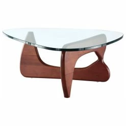 Interior Modern Abstract Triangle Glass Top Modern Coffee Table Wooden Base, Dark Walnut