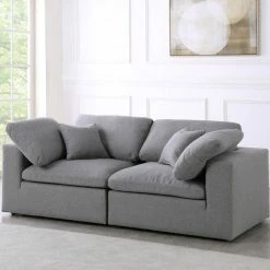 Meridian Furniture Serene Down Filled Cloud-Like Comfort Modular Sofa, Gray, 2-Seater