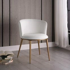 Meridian Furniture Skylar Dining Chair, Set Of 2, Cream Velvet, Brushed Gold Iron Legs