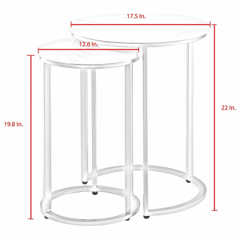 - SPACE SAVER – Our brand new stackable nesting end tables in a set of 2 is a compact and functional item. Its stacking design maximizes space and serves a variety of functions. The round top surface is perfect to display a lovely floral arrangement, lamp or family photos