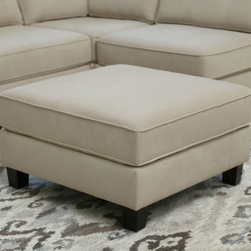 - Set Includes: Two (2) Corner Chairs, Two (2) Armless Chairs, Ottoman