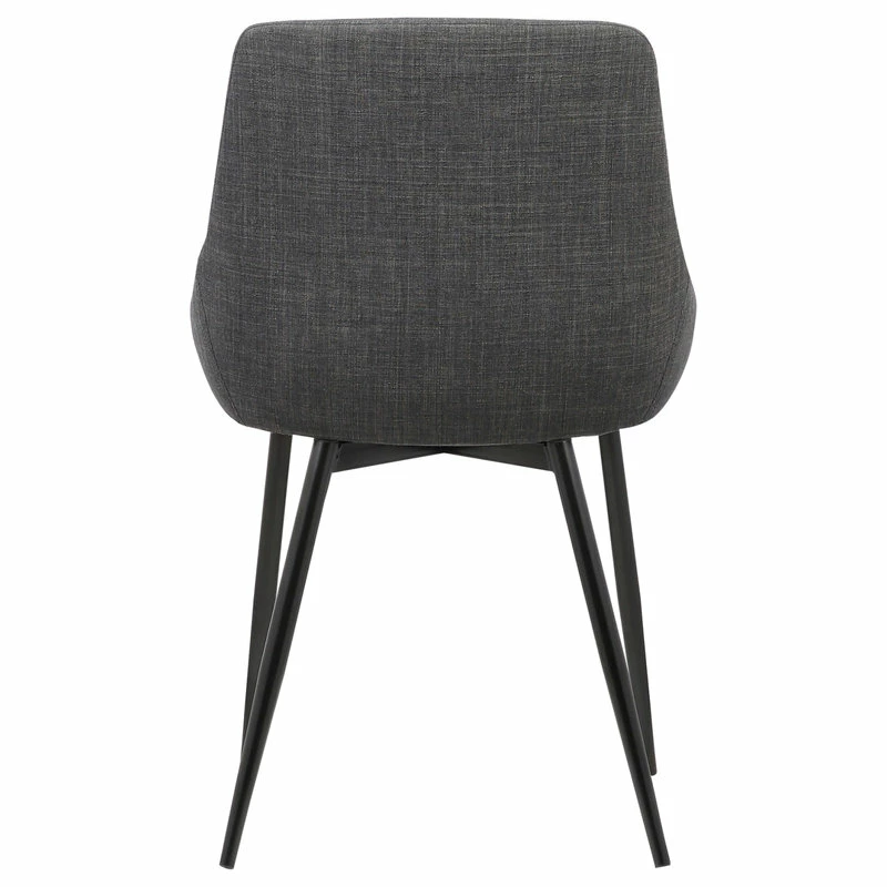 The Armen Living Mia contemporary dining chair is a practical yet stylish addition to any contemporary dining room arrangement. The seat is made of a sturdy frame covered with an exquisite fabric while the legs are made of a sturdy yet stylish black metal. The Mia chair comes in two exceptional color choices: charcoal and gray.