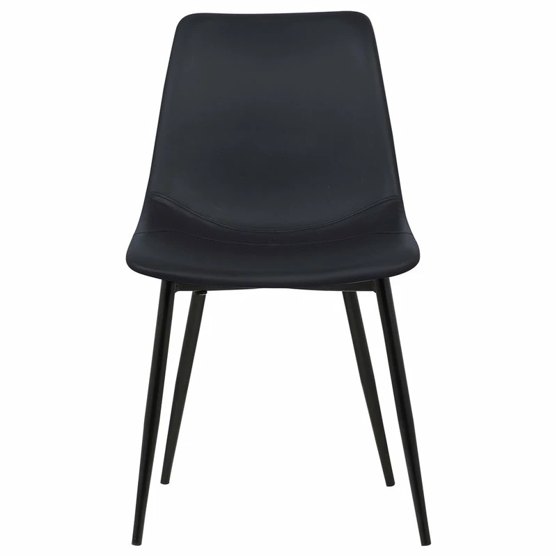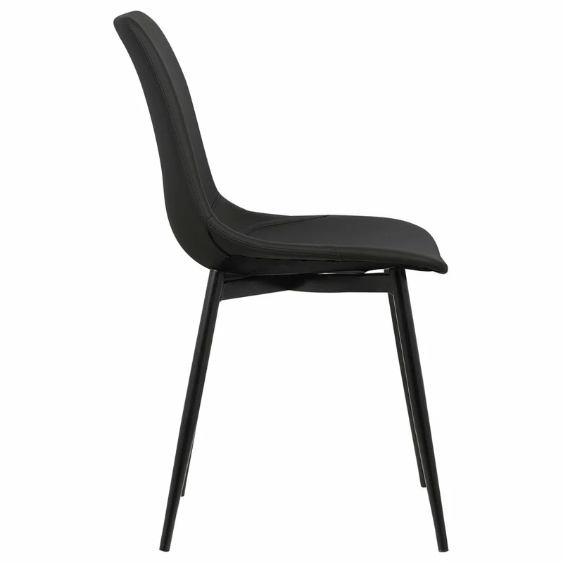 Give your dining room a sleek and stylish upgrade with our Monte Dining Chair from Armen Living. Featuring a modern and streamlined silhouette, the chair impresses with its effortless style. The sleek faux leather or fabric seat perfectly harmonizes with the tapered metal legs to deliver contemporary charm to your home. Upholstered in high-grade faux leather or fabric, the chair remains a versatile addition to any room that needs a comfortable seat. Expertly tailored, the Monte dining chair remains generously padded to ensure a comfortable dining experience for all. This dining room accent chair is universal and can easily transition to your kitchen, home office, living room, or bedroom and its sturdy materials allow for a comfortable seat that will last for many years to come. The Monte dining room chair is armless, making it easy to pull up to any surface and it�s available in your choice of black or grey faux leather or charcoal fabric upholstery. The Monte can support up to 250lbs and features a 17-inch seat height.