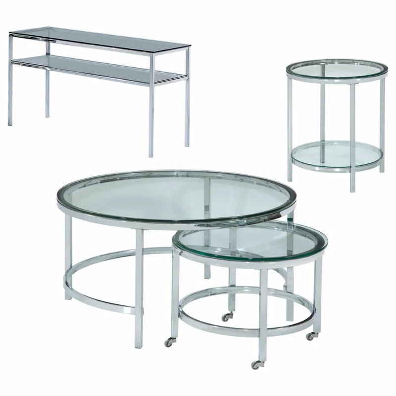 Make a bold statement with this unique Patinoire Round Cocktail Table on Casters. Featuring a stunning design and beautiful polished chrome color, this cocktail table is ideal for gatherings with friends, displaying accent trays, or even kicking up your feet to relax. Perfect for a transitional style home, this 34 inch by 34 inch by 18 inch table is sure to enhance the look of any living space.