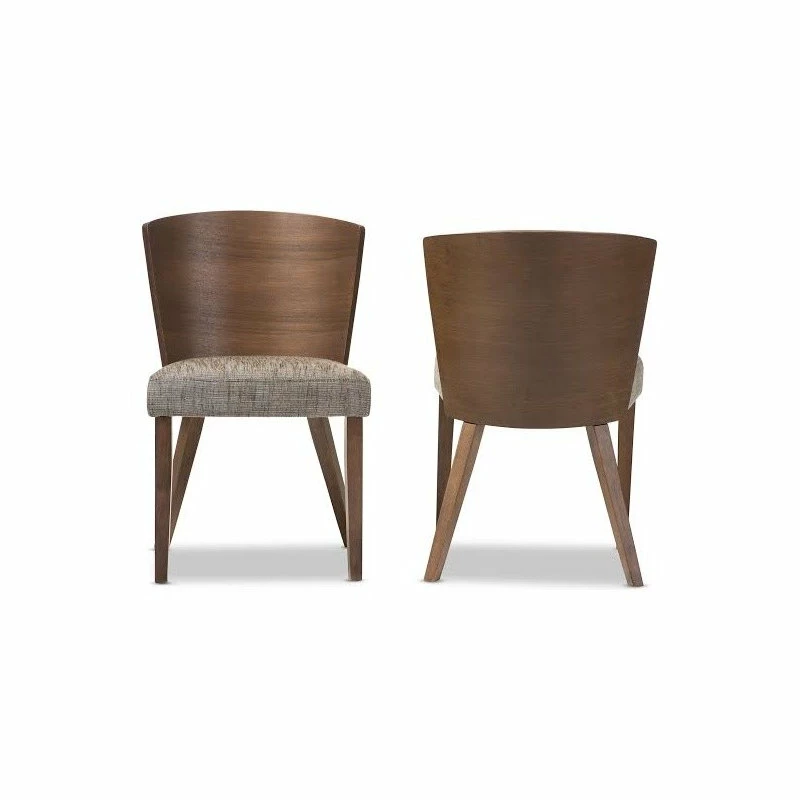 A minimalist dining chair effortlessly dresses up a dining space. Our Sparrow Modern Dining Chair is made in Malaysia with a rubberwood frame, walnut finish, and a foam cushion with matching “gravel multi colors fabric. This designer dining chair??s convex backrest makes it ideal for use around a circular dining table. To clean, wipe with a dry cloth/spot clean. Assembly is required.