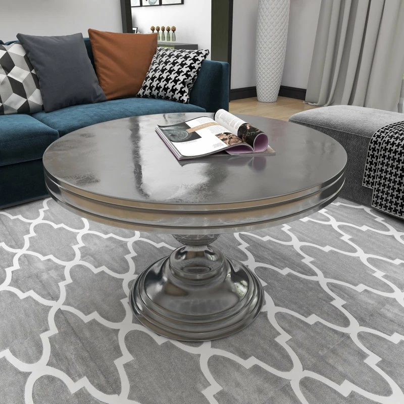 SKU: 30780 Category: Coffee Tables Tags: Accent furniture, Aluminum coffee tables, Coffee tables, Living room furniture, Metal coffee table, Metal end t, Metal side table, Metal table, Round coffee tables, Silver round accent table, Silver round table, Small coffee tables, Traditional Coffee Tables, Traditional decor, Traditional furniture