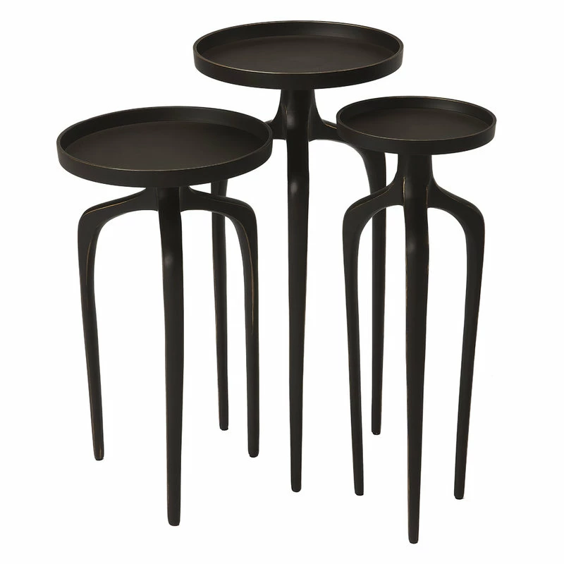 SKU: BU4421295SP Category: Coffee Table Sets Tags: 4421295, 797379043003, Accent tables, Aluminium accent table, Aluminum, Black, Black accent table, Butler, Butler loft, Distressed, Family room, Home accent, Home decor, Living room, Modern, Round, Scatter table set, Tables, Tray table, Tray tables, Tripod