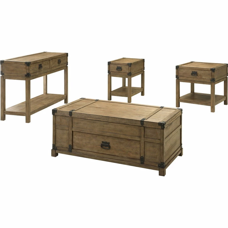 This unique cocktail table will add style and storage to your space. The Carmel Burnished Natural finish is warm and homey. Black metal accents add rustic and charming details. There is a lower drawer, but its special feature is the lift top allowing easy access to interior compartments.
