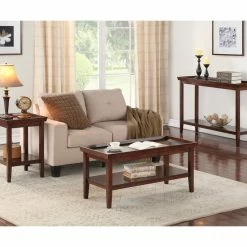 The simple, yet charming look of the Ledgewood Coffee Table from Convenience Concepts offers a practical solution for any home. Beautifully crafted from solid rubberwood, this piece will stand up to any occasion. The tray-like table top with raised edges will keep all of your belongings safely and securely on the table without any worries of broken clocks, lamps, or any other fragile items you may keep. Also featuring a bottom shelf for additional storage and display, so you can showcase your favorite collectibles or add a basket to neatly organize remote controls for any media or gaming consoles. Clean lines paired with a classic tapered leg give this piece a timeless look. Available in multiple finishes, the Ledgewood End Table will easily complement any new or existing decor. Look for other items from the Ledgewood Collection by Convenience Concepts for the complete look; each sold separately.