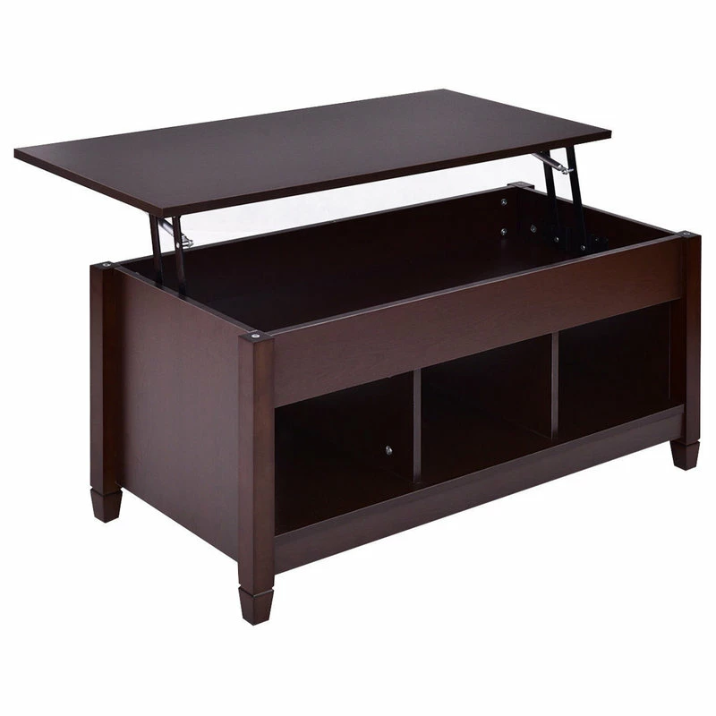 This interactive lift top coffee table combines fun and practicability for people. Featuring an adjustable height surface which provides the perfect height for you when you work or drink a cup of coffee, and the hidden storage underneath the table top and the storage space below the table top that make this lovely piece functional as well, it is worth having!