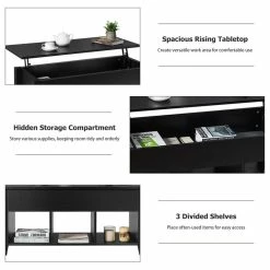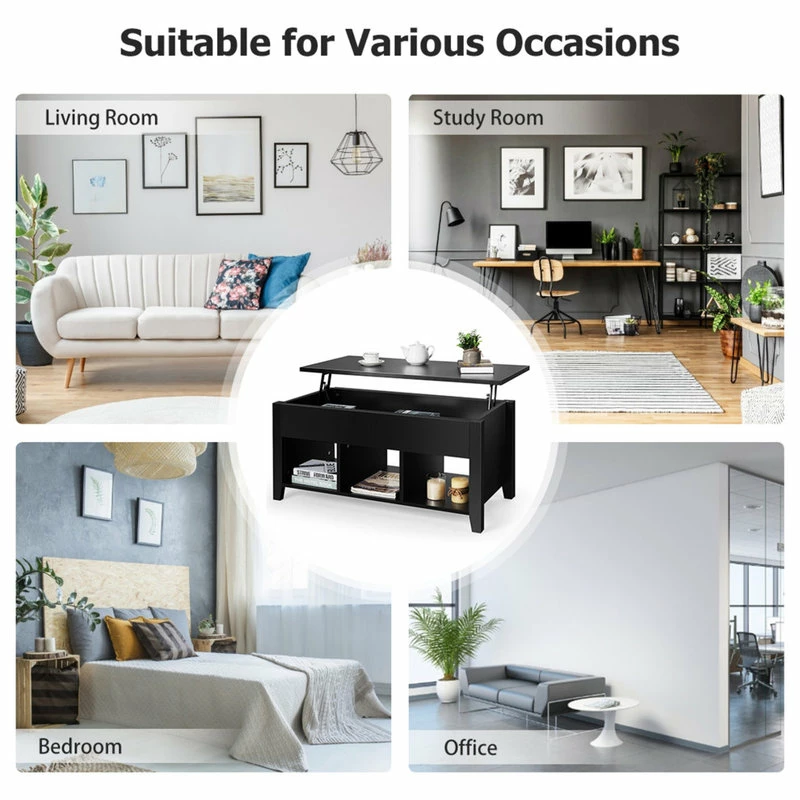 Do you want a table to have a cup of coffee? To collect your daily objects? You need a high-quality lift top coffee table with ample storage space in your living room. This is out new coffee table, with a top that can be lifted up and lower down to different heights for multiply functions. Under the top, there is a hidden compartment storage space to save your daily objects, like books, magazines, game controllers, remote controls. Besides, there are three open shelves at the bottom, meeting your collect needs and improving the space utilization. This coffee table with a special design will not be your wrong choice. Do not hesitate anymore. Come to buy!