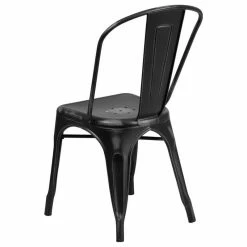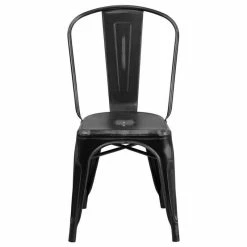 All furniture purchases are final. If furniture arrives damaged or is defective please contact customer service. Features: The charming, bistro style chair will add a trendy old world look to your restaurant or dining room at home Plastic bumpers on the cross brace protect the chairs’ finish when stacking them Drain holes in the center of the seat allow water to drain, preventing rust Rubber floor glides protect your floor by sliding smoothly when you need to move the chair Designed for both commercial and residential use, this trend-setting chair will be a great addition to your dining room at home or the outdoor patio at your restaurant. Curved back with vertical slat Seat drain holes assist in drying Powder coated frame finish