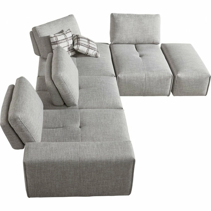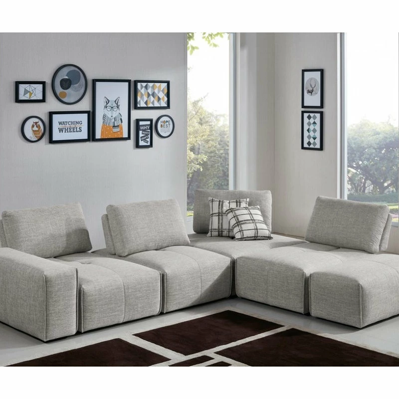 Spruce up your living room with the trendy style of Divani Casa Platte Modern gray Fabric Modular Sectional Sofa. Flaunting a simple sleek look, it has a wood frame and is upholstered in 100% polyester fabric. Designed with move-back seat backs, this modular sofa satisfies your comfort zone while seated and doing whatever kind of activity you enjoy in the living room. The horizontal seams that cross over the vertical seams on the seats and the stitched edges indicate its durability. Sturdy plastic legs keep this sectional sofa off the floor.