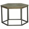 Heavily influenced by industrial design, the Holverson Collection will lend a unique look to your personal space. Gunmetal finished wood framing provides sturdy structure and profile to this cocktail table offering. Faux rivets provide additional detail to the metal bracketing that is prominently on display. A rustic brown milk crate finish is utilized to highlight the acacia veneer. Open shelving allows for prominent display of your favorite decorative items. Coordinating end table, sofa table, dining, home entertainment and bedroom are also available.