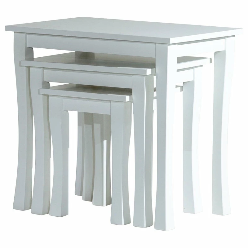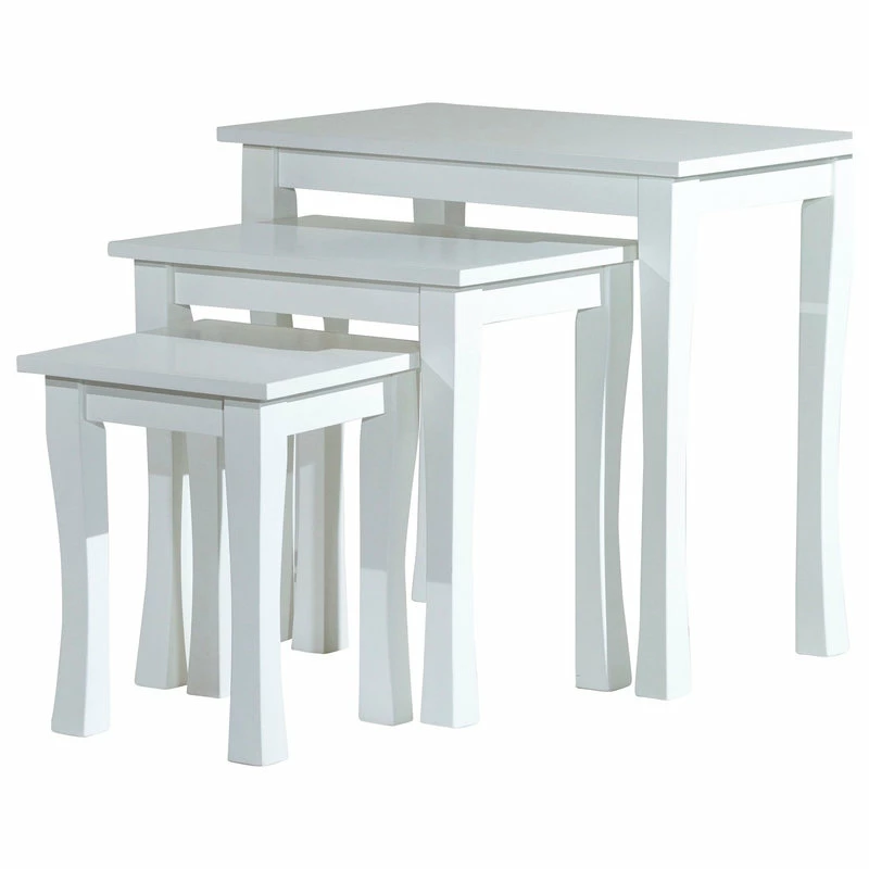 Add extra table space to your living room with this 3-Piece nesting table set. These Golden Nesting tables are an elegant way to add a traditional design element to your home. They are functional as well as beautiful by providing a lot of table space without taking up a lot of room. These hardwood tables feature a tapered leg with beautifully carved details and classic lines. They are available in two finishes. The three tables nest beautifully or can be used separately.