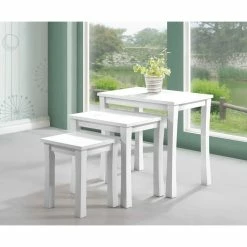 FUNCTIONAL: The three tables nest beautifully or can be used separately. They are functional as well as beautiful by providing a lot of table space without taking up a lot of room. The medium and small table stack completely under the large table or can be staggered to add extra display space. They are perfect for any room.