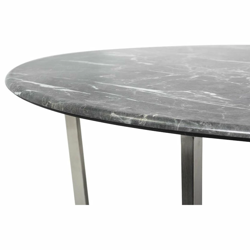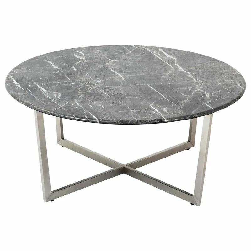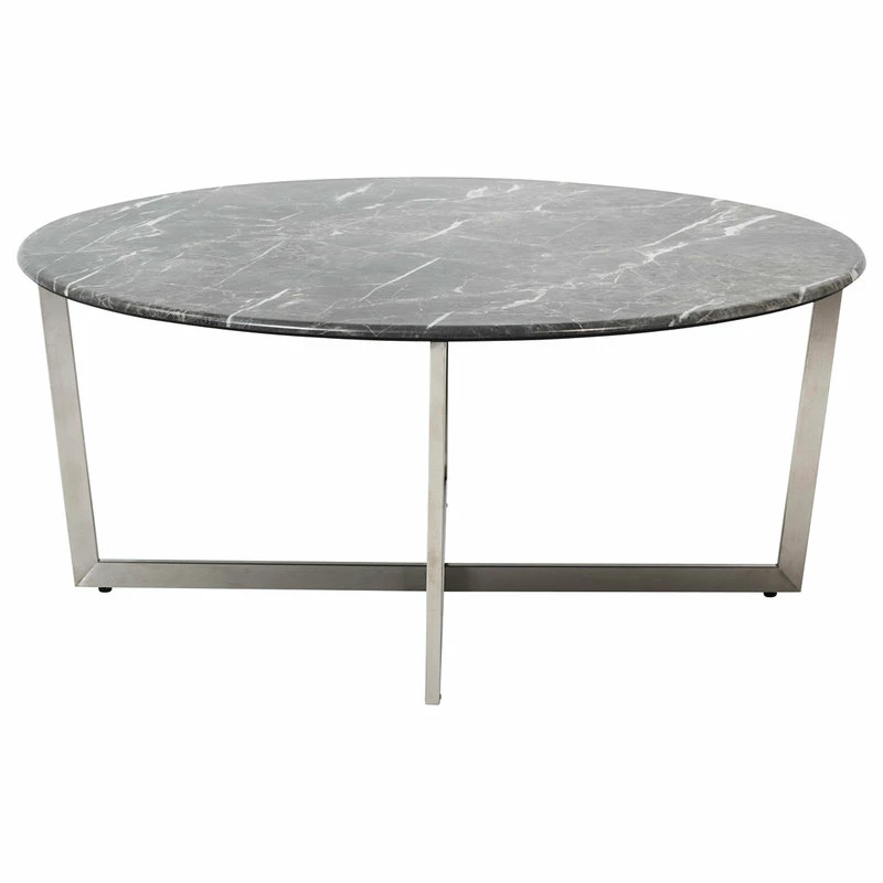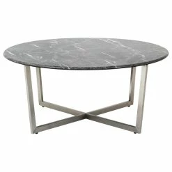 The Llona Round Coffee Table is arranged to have a two-dimensional appearance when viewed from certain angles. The beautiful round marble top is available in both black and white with stainless-steel legs. The effect is a polished look and unique shape.