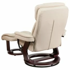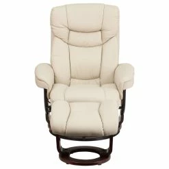 - Flash Furniture BT-7821-BGE-GG Contemporary Beige Leather Recliner And Ottoman With Swiveling Mahogany Wood Base Features: