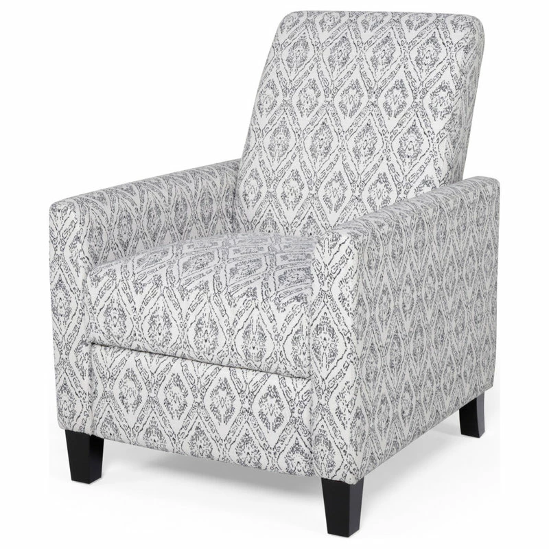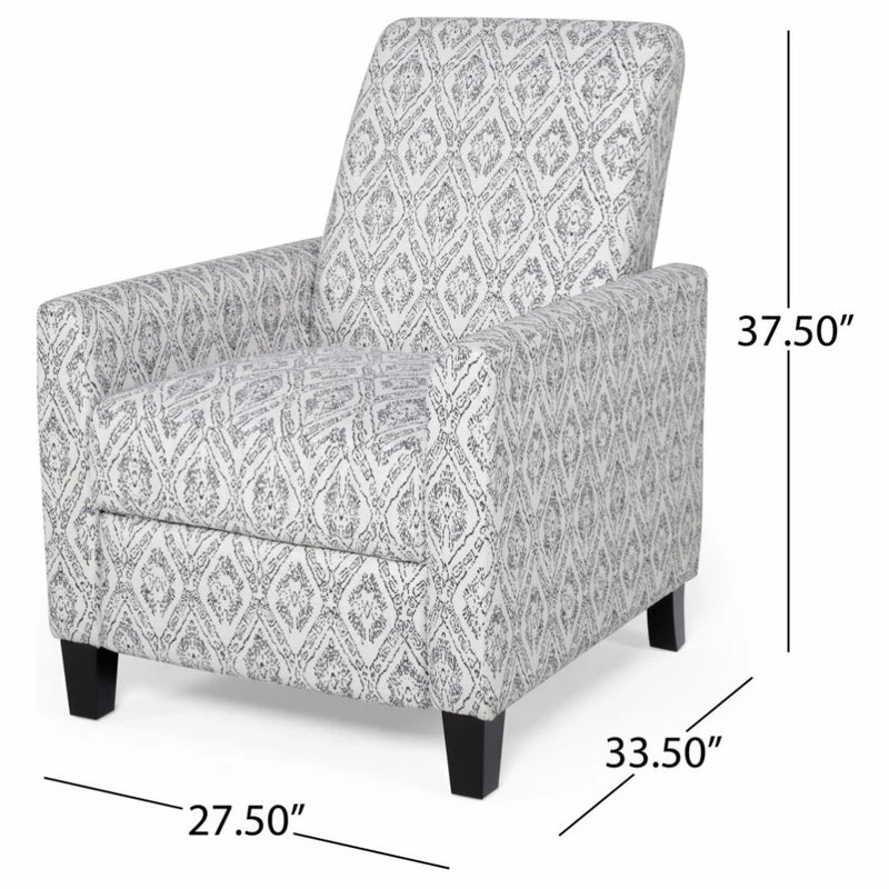 Take the chance to unwind in our plush push-back recliner and experience a whole new world of delightful coziness. Our convenient recliner chair provides an incredibly high degree of leisure in an attractive package, emphasizing a charming contemporary design. Featuring plush seating and refined upholstery, this recliner pairs perfectly with the push-back functionality allowing for high comfort with little effort. Sure to become the new favorite spot of leisure, you and your family will surely enjoy this recliner for years to come.