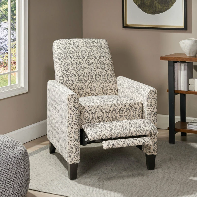 PUSH-BACK RECLINER: This recliner is a push-back recliner that allows you to lay back and relax after a long day. Simply use your body weight to push the chair back to recline and tilt your body weight forward and upwards to bring it back to the upright position.