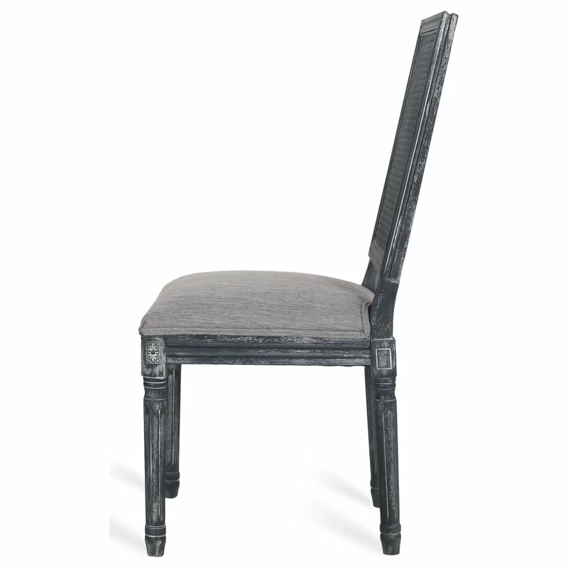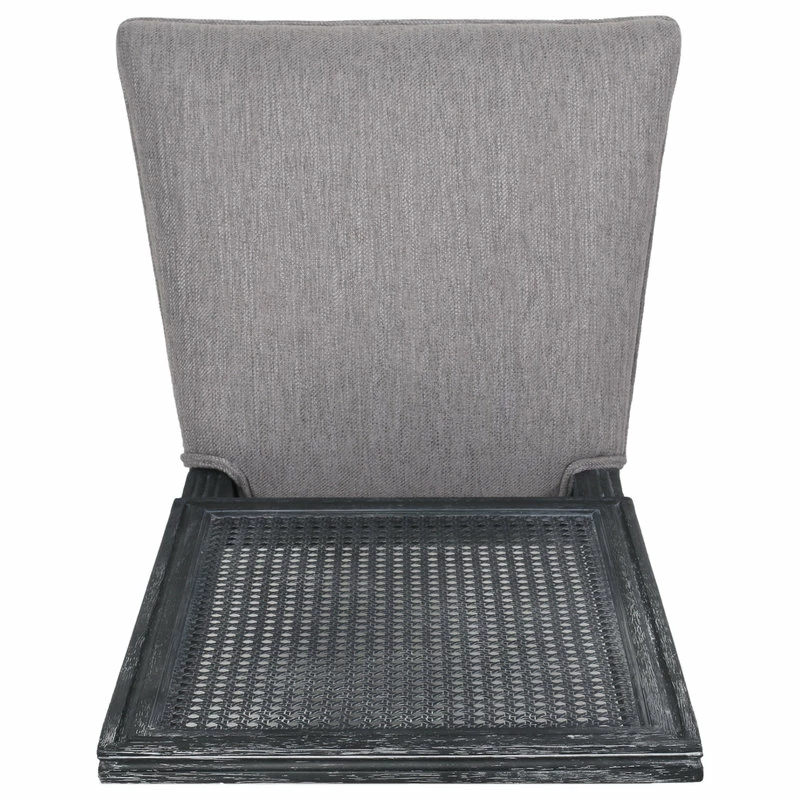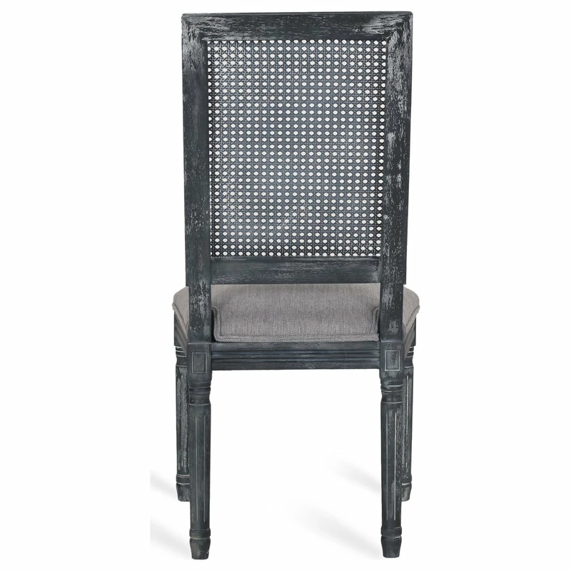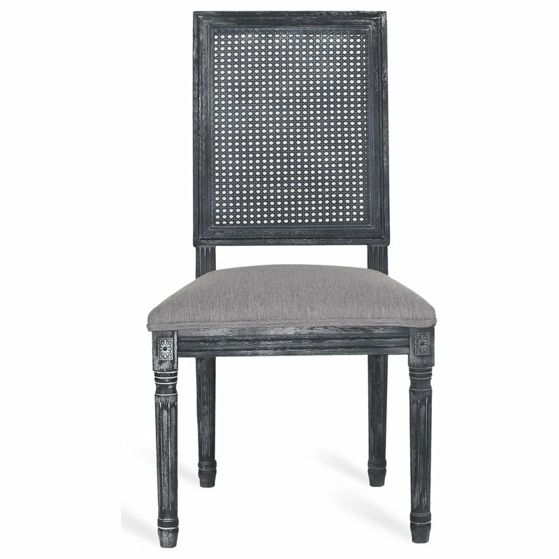 Finely crafted with sophistication, these chairs turn your dining area into a masterpiece. Drawing from French country inspiration, our set of two dining chairs feature an understated rectangular backrest made with cane, smooth upholstered seating, and fluted legs to offer your home something a little out of the ordinary while also remaining true to their elegant, old-fashioned roots. Their weathered frames showcase wonderfully contrasting lines and carved accents that encourage both casual meals with your family or extravagant dinner parties with your guests.