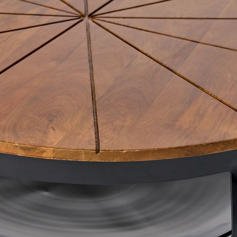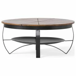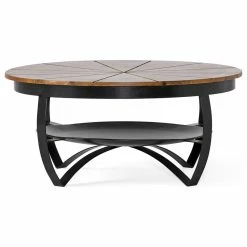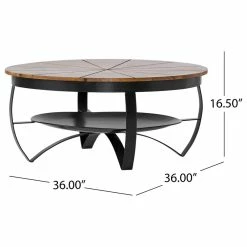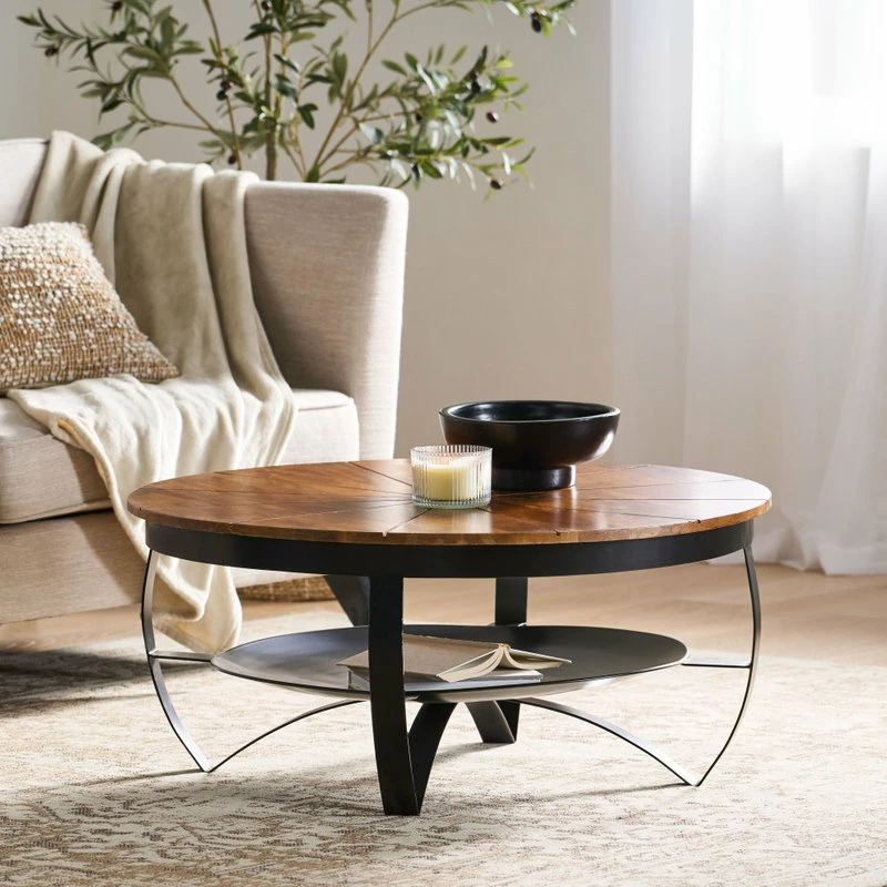 Your living room space can easily transform into an incredible masterpiece with a single addition of a stunning coffee table. This table brings a charming modern industrial touch to your home with its etched circular tabletop and open metal shelf. Its gracefully curved iron legs bring a refined atmosphere to this piece while providing incredible stability. With a sturdy mango wood tabletop, this piece won’t just blend with your existing decor but will bring out the best of your interior space.