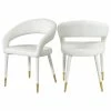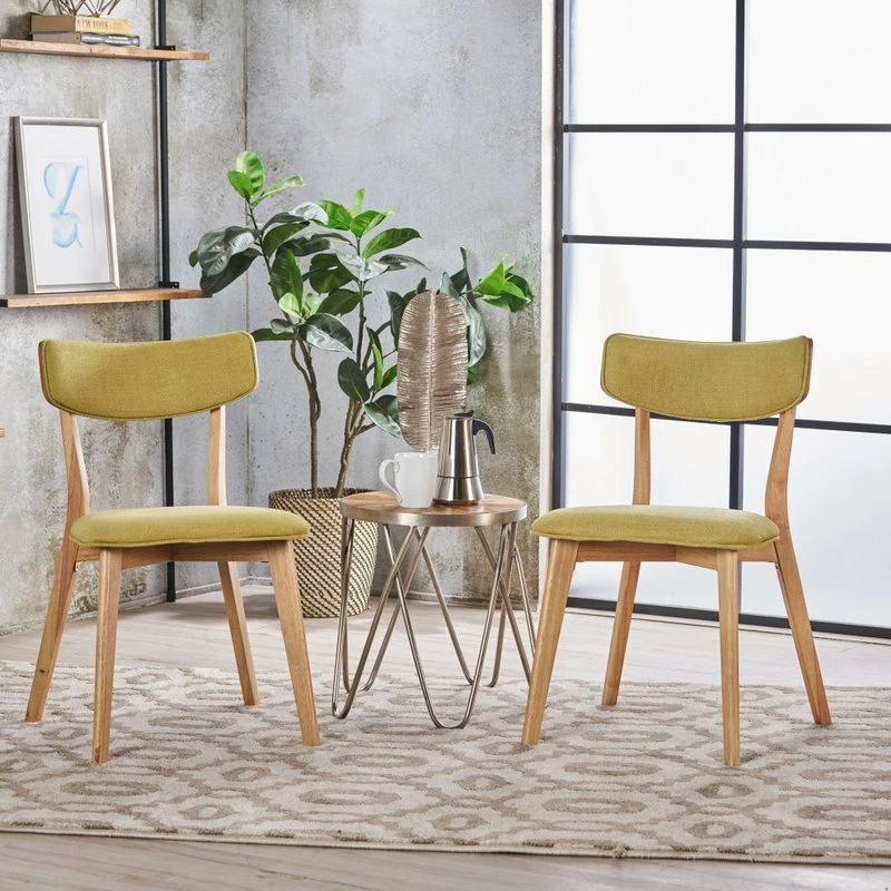 Complete the mid-century modern aesthetic in your dining room with these gorgeous, eye-catching dining chairs. These striking chairs feature soft, upholstered seats and beautifully-finished wood frames. Stunning curves and splayed legs bring even more intrigue and depth to the chic aesthetic. The combination of textures and colors adds dimension to any well-edited space. Fill your dining room with retro charm by pairing these bold and unique chairs with an equally charming dining table, a bold rug, and a coordinating sideboard.