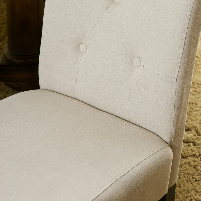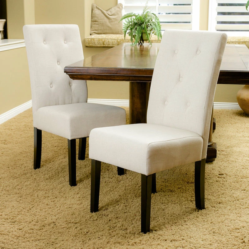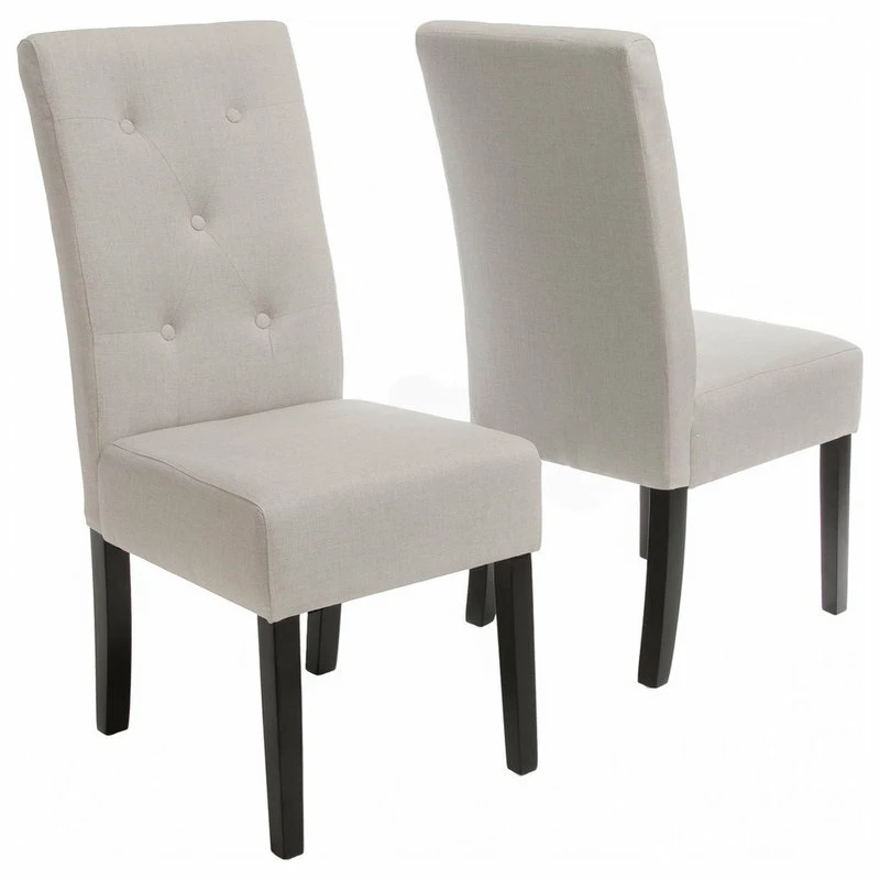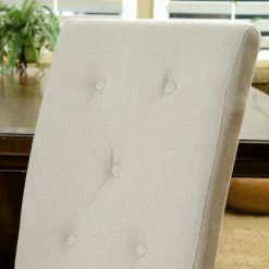 The Alexander dining chair is upholstered in beautiful natural plain linen fabric with a button tufted backrest. This chair is comfortable and sophisticated for any dining room or kitchen area.