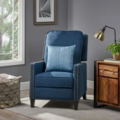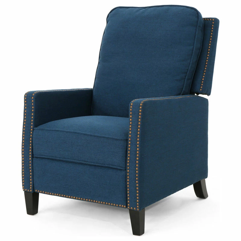 This push back recliner is a wonderful addition to any style home. Featuring a classic design with stud covered frame, this recliner is a statement in and of itself. With extra plush cushions and a plush seat backing, you can not go wrong with this recliner. Sure to become your favorite chair in no time.