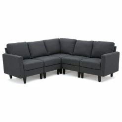 Whether you are looking to host an evening get-together with friends or settling in for movie night, this sectional couch is a great addition for your living room. This sectional is conveniently adaptable, allowing you to mix and match the pieces to create the perfect set for you. This couch features soft fabric and plush cushions, to give you the best relaxing experience in your own home. From its streamline design to tapered legs, this sectional sofa is a chic centerpiece for your interior space.