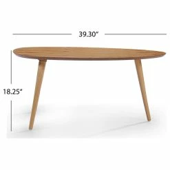 Complete your carefully-curated living room with our eye-catching and unique coffee table. Made of solid wood, this table is durable, high-quality, and naturally charming. This oval table promises mid-century modern flair in the form of splayed, tapered legs and clean, straightforward lines. In the case of this breathtaking table, simplicity can be truly captivating, and its commanding aesthetic also happens to be incredibly versatile. Style it with mix-and-match accents and furniture for an eclectic look, or choose other retro pieces to keep your space cohesive..