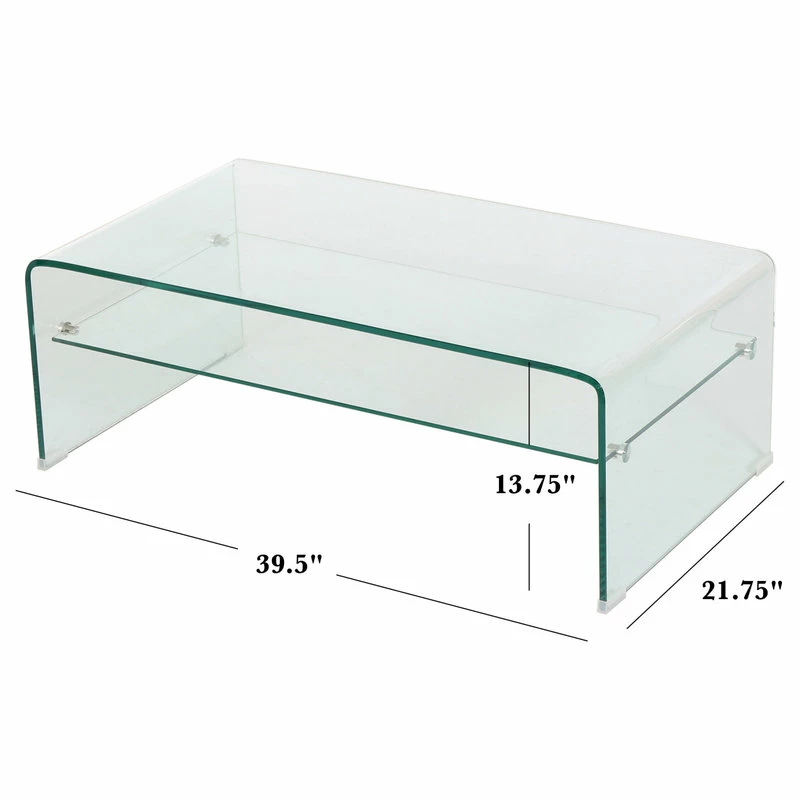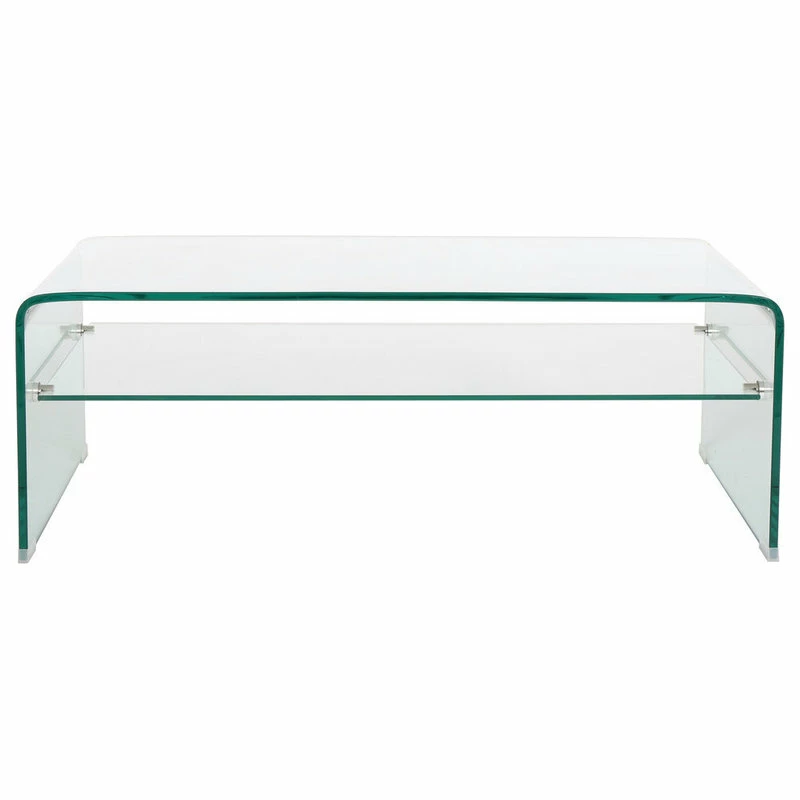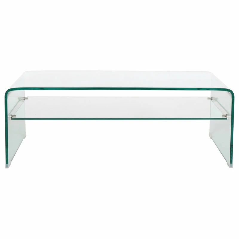 Adorn your home with a sleek, shiny and sophisticated touch with this glass coffee table. Its transparent top surface and shelf allow the beauty of your flooring to show through. It brings interest to your room without adding visual clutter.