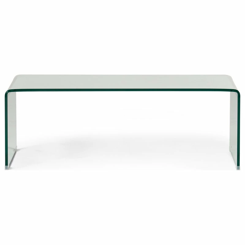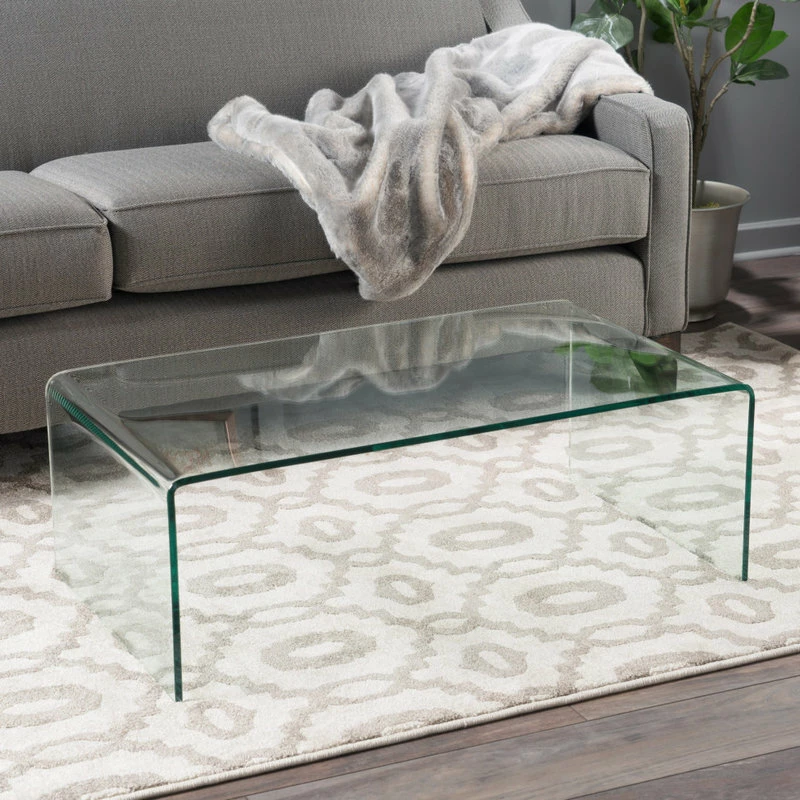 Infuse your modern living room with artistic flair using this commanding coffee table. This sleek table features a simple, curved silhouette and a unique, undulating look that creates a striking optical illusion. Constructed of glass with a subtle green tint, this artistic design makes a strong and stylish statement. Pair it with a unique rug, chic seating, and eclectic decor to give your one-of-a-kind space the perfect centerpiece. Make a unique choice for your contemporary living room with this unexpected coffee table.