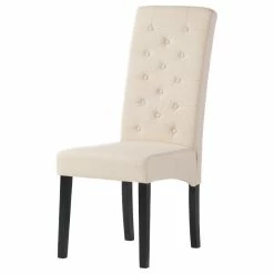 With its tall back and ample tufting, the uniqueness of this dining chair will allow you to welcome it into any room in your home. Complete with soft natural-colored linen, these chairs will suit any preexisting decor.