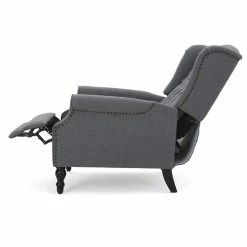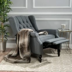 Perfect for entertaining or relaxing, our armchair uses a smooth pushback reclining mechanism and carefully crafted accents to tie your home together with absolute sophistication. This pushback recliner features gorgeous details such as button tufting, diamond stitching, and tonal piping to bring your decor to the next level. Finished with a lovely wingback design and rolled recessed arms, our recliner is as stylish as it is functional.
