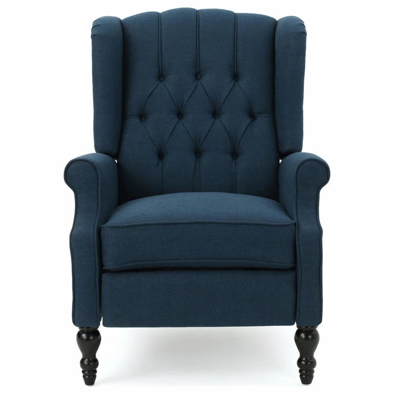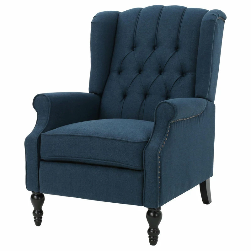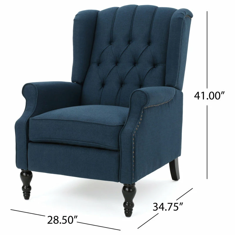 Perfect for entertaining or relaxing, our armchair uses a smooth pushback reclining mechanism and carefully crafted accents to tie your home together with absolute sophistication. This pushback recliner features gorgeous details such as button tufting, diamond stitching, and tonal piping to bring your decor to the next level. Finished with a lovely wingback design and rolled recessed arms, our recliner is as stylish as it is functional.