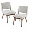 - Gray linen upholstery makes these chairs suit any interior