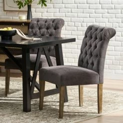 The Elmerson Roll Back Dining Chairs are beautiful, have sturdy construction, and have fully cushioned seat and back, let alone how comfortable they are. These chairs are easy to assemble and will look great even as side chairs in any dining room. A great addition to any home.